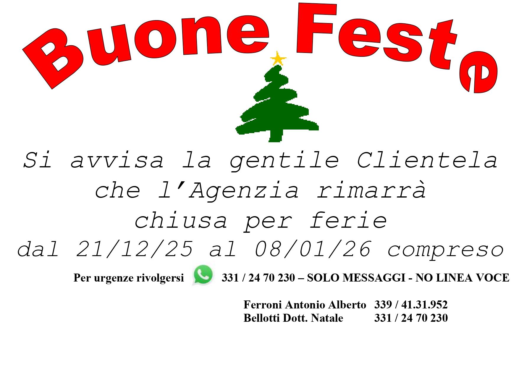 Chiusura per festività natalizie 2025
